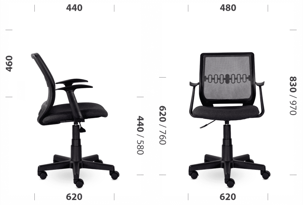 Кресло отличается своей компактностью и подойдет для небольших помещений. Т-образные подлокотники и эргономичная спинка, обтянутая сеткой, обеспечат удобную посадку на протяжении всего рабочего дня.